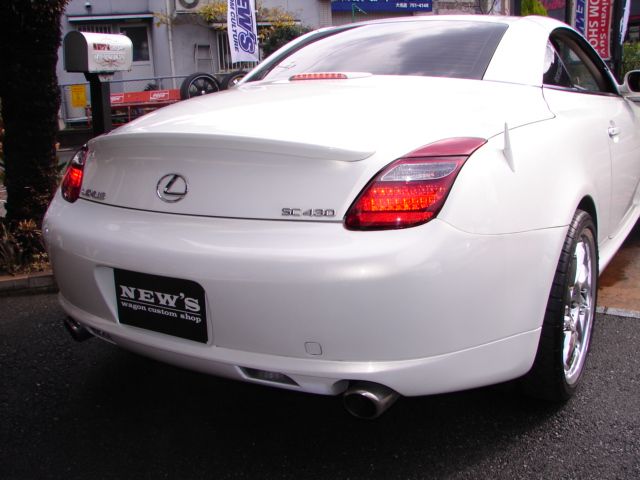 現行へッドライト、グリル、テールライトを変更し後期設定が無いオートクチュルのバンパーをグリルのライン、ライト目じり等々の整形をし苦労の末完成しました(≧∇≦)フォグはHID7000ケルビンに変更済み、その後フェンダーにメルセデスベンツのSL用ダクトを埋め込み加工しとどめは、ロリンザーLM6の高級ホイルを本格的にPCD加工して装着しています、そしてブレンボ。。。F50フェラーリ用を装着しています。最後にわかりづらいですが、リアフェンダーに埋まっているショートアンテナですが実はこれもベンツのSLです。次はマフラーですね。 |