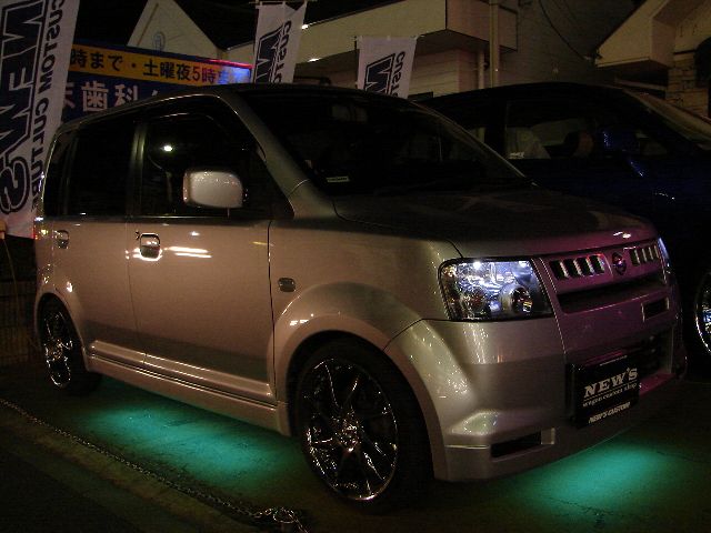 お仕事が忙しすぎて腰を痛めてしまったS様。。。『純正でもスポーティーな足回りのOTTIでは腰に悪い!』と・・・エアサス装着しました!!!16”のホイールでバランスよく仕上げました。セキュリティーもパンテーラZシリーズで防犯バッチリです☆新たにアンダーライトキットを装着!カラーはグリーーン!ほんのりと照らされてる感じがGooです!!(>-^)b 足元を全体的に光らせたいとゆうことで、次回はホイール内のLEDライトを計画中!乞うご期待です!! |