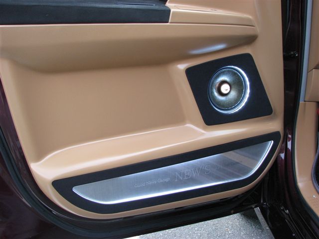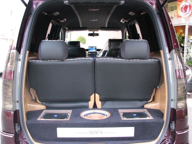 内装はブラック&ベージュで重たくなりすぎないようにしました。ポイントでスエード生地を使用する事で、高級感も出ています。オーディオはフルアルパイン仕様で、音にもしっかりこだわりをみせつつ、部分的に使ったアクリル&ホワイトLEDでさりげなく見せる仕様にしている所はさすがです! |