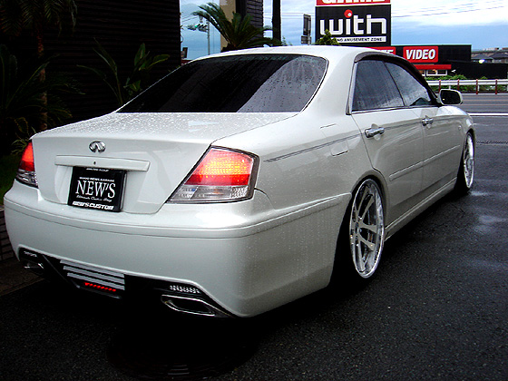 こちらのグロリアについてるエアロ…皆さん見かけないなぁ?とお思いでしょ?? なんてったってワンオフですから!! (≧m≦) フロントバンパーにはISフォグを入れたり、塗り分けたりとオリジナリティを追求し! リアバンパーはディフューザーにセンターにLEDーランプを入れ塗り分け! こだわってます!!!