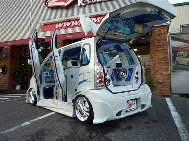何も語らなくとも分かっていただけるでしょう!!何とスタートはアストロ仕様のエアロをつけていた状態から、、、徹底的にアウトローにこだわり仕上げていきました。世界初のKカーでの4枚ガルウイング!!やっぱりこれが一番の見所ではあります。書ききれないほどのこだわりが詰まっています☆写真は細かいところまでしっかり見てください。オーナーさん曰く・・・最終仕様ではありません!!と・・・。計画は常に進行しておりますのでお楽しみに。。。 |