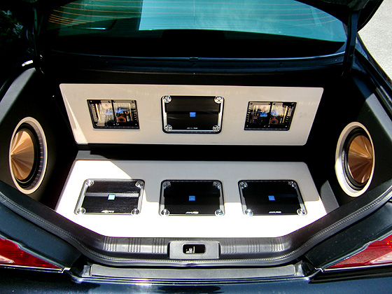 オリジナル レッドウッドにてイージーグラフィックを施工してBLKレザーとの愛称は抜群です!!天井・ピラーはアルカンターラレザーを使用して張替え。極めつけはトランクルームのオーディオ作りこみ!!オレンジのLEDとアクリルを使って『魅せる仕様』にもばっちりです☆音質にもこだわって、、、ハイファイシステム組んでいます。 |