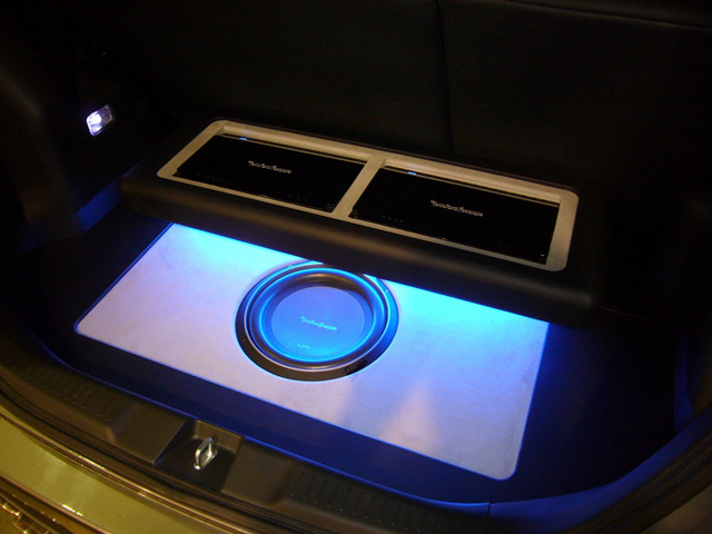 インパネ部分をブラックにペイントし、オーディオはヘッドユニットやスピーカーはアルパインでトランクにロックフォードのアンプとウーファーを使いながらブルーLEDを間接照明風に照らしながらオーディオの作り込みヤッちゃってます☆ |