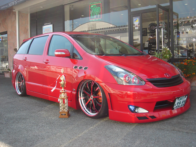 ご覧の通り加工尽くしの外観です!!ベンツSクラスFOG移植にマセラティフェンダーダクト、ベンツマフラー、仕上げは20インチに合わせて作製されたナチュラルオーバーフェンダーです。ホイールをWORKヴァリアンツァシュヴァートSC4の特注カラーに変更後、更にリアバンパーをWALDのアルファード用ブラックバイソンエディッションをニコイチ加工&フロントバンパーにダクトを追加してます♪台湾仕様のLEDテールもポイントですね☆ 最近ではイベントでも目立ちまくりみたいです(笑) |