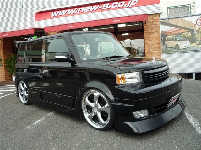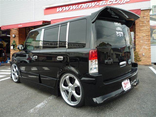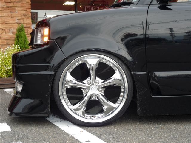 ホイールはWORKのVS KF メッキ!タイヤはTOYOの新作MP2!もぉ何も言わずとも分かるこの迫力の足元…そぉです!bBに前代未聞の20インチをブチ込んじゃいました!!拝|゜Д゜|pワオォ 足回りはえあさす!キャリパーは赤にペイントし、これまたド迫力のファブレスエアロ!とボンマス(ボンネットマスコット)もバッチリ装着してます《*≧∀≦》 ライト類も現行車と同じクリアレンズのUSライトと赤白タイプのテール。ピラーにもメッキを施しキマッてます!播(゜∀゜d) |