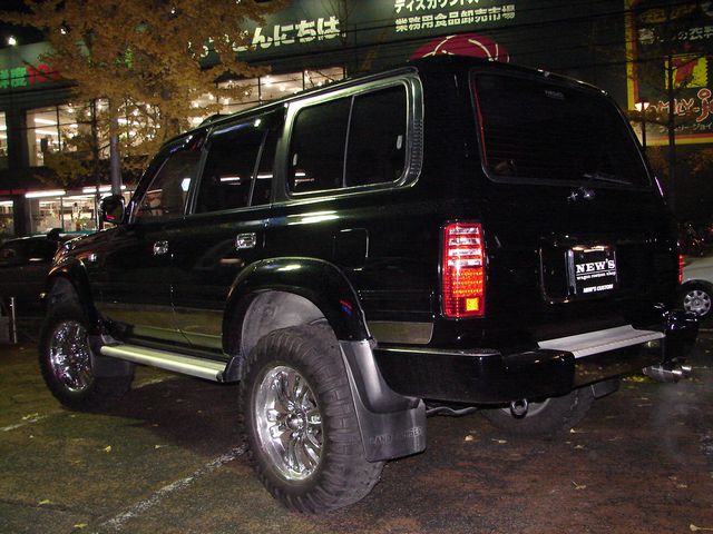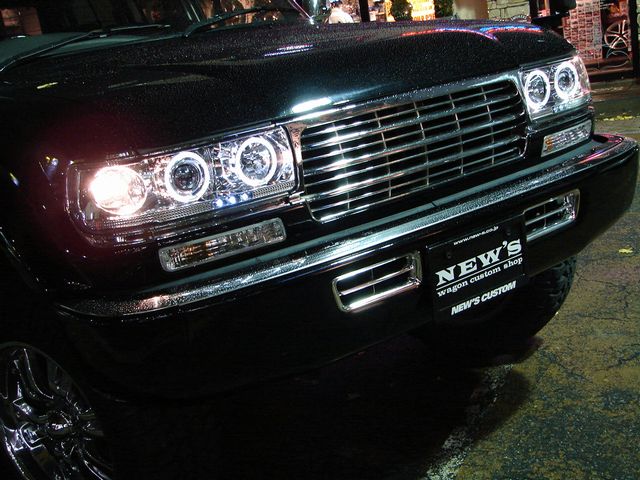 足元にMKWのMK-9 20インチにS/SのTRXUSを履いて、3インチリフトアップ!かなりイカツさ抜群!!ながらもヘッドライトはイカリング付きのプロジェクターに、メッキグリル、バンパーグリルもワンオフメッキ加工!ドアミラーやフェンダーウインカー、ドアパネル、リヤバンパーにも程よくメッキを取り入れてキレイにカスタムされてます。(≧∇≦*)oテールはベンツ風のLEDテール、マフラーはZEEL製など個性的でトータルバランスグゥ〜な1台です!(゜▽^*)b |