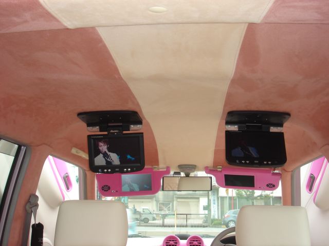 今回は、インテリアが大幅にリメイクされました!ダッシュボード、ドア、バイザーは『ヴェノム』を施工し、シート、天井、ピラーは張替をしました。シートには、New'sロゴをワンポイントとして刺繍を入れています!随所ではペイントを施工し純正雰囲気を一気取り除きました(^−^)モニターも追加でフリップダウンを2枚装着しています! |