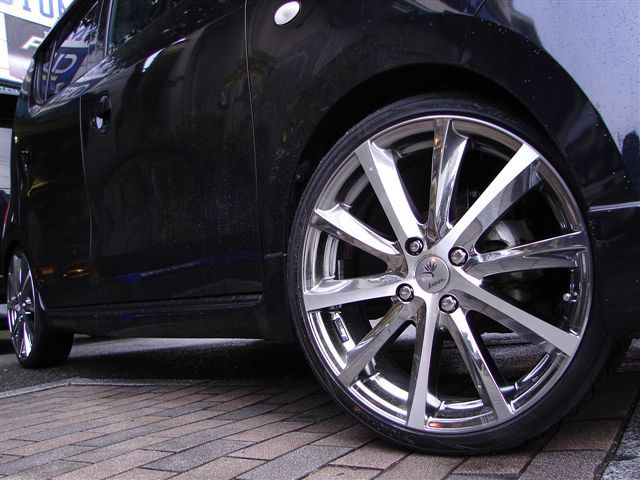 いっそうかわいらしさを増したデザインになったモコ。このモコをもっとかわいく!?かっこよく!?するべく・・・足回りのドレスアップに取り掛かったM様。始めは16インチの予定でしたが・・・実際、車に合わせてみると小さく見えてしまい、、、17インチのクレンツェ・ヴィシュヌに即決!!!ダウンサスでちょいと落としてバランスをとりました☆