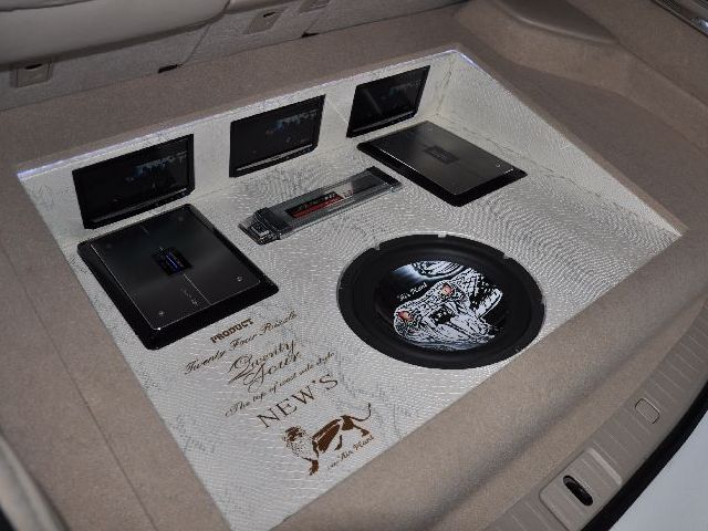 ご存知!有名車両の登場です、なんといってもこの22インチに「アート」されている地元.福岡の街並みのエアブラシ!!強烈ですね、実は以前にラゲッジオーディオを製作していたのですがやっとUPです(失礼しました)( ̄▽ ̄;A足回りはタナベのエアコブラで見どころ満載です(^-^)V