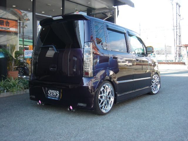 まだまだ希少のワゴンRスティングレーです!翔プロのフルキットにまだまだ大人気の和道 桜の17インチで女性らしい仕上がりですね♪極めつけは完全ワンオフのキティちゃんマフラーです(^^)ハートマークをピンクペイントしてるのも可愛いらしいですね!!