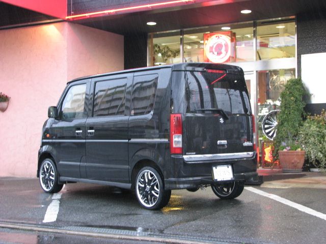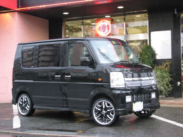 今回エブリィで登場のHさん、カスタムベ−スとしては新しい車種ですが、L566ブラックサイドマシニングでこんなに豹変してくれました。やっぱりオシャレは足元から〜。