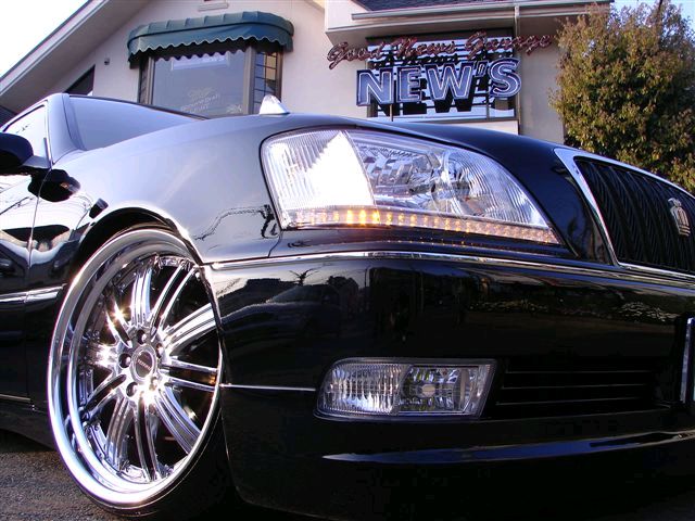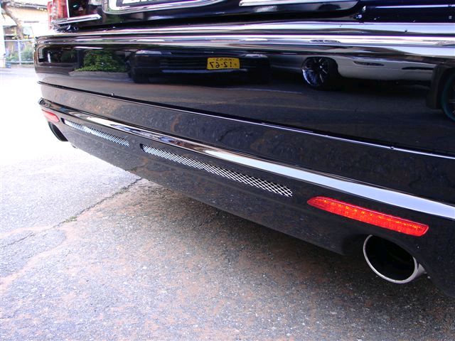 エアロはWALDのエグゼクティブラインをチョイスしリヤには汎用マーカー+ダクトをワンオフで入れてます! ホイールにはWORKのヴァリアンツァのF2S 20インチを車高調で低車高走行! ヘッドライトの下部分ウインカーはオーナーO君こだわりでワンオフLED加工! 仕上げはオールペンブラック! イ・カ・ツ・イ!!