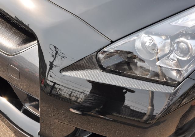 ゼルインターナショナルさんのダクト付きフロントバンパーのライト目じり付近を延長してカーボン化しました!!おかげで非常にシャープで精悍な顔つきになりましたね!!さすがいいセンスされています!