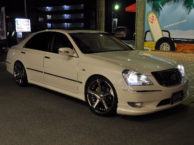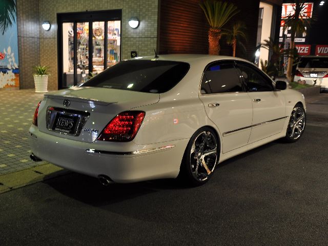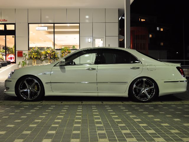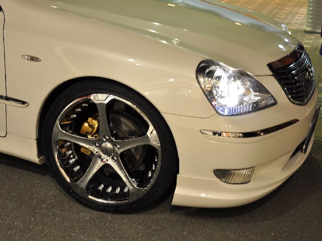 ジオバンナダラーの20インチを装着し、スポークの隙間から見えるブレーキキャリパーをゴールドにペイントし足元はバッチリ押さえています!しかも純正エアサスで低車高走行するためにSSキットも装着しています!