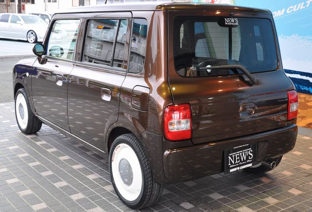 まずは目を惹くボディーカラー☆オールペイントでNew'sオリジナルブラウンへと変更し グリルの一部もボディー同色へと塗り分けています!次に目を惹くタイヤホイールですが 女性ユーザーにはピッタリの可愛らしいデザインのハートボイスホイールを選択!センター のホワイトがワンポイントとなってエクステリア全体のバランスを保っていますね!