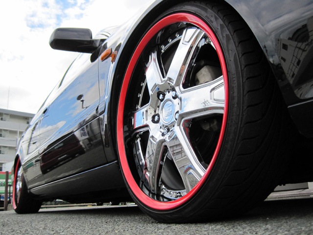 まずは目を惹く足もとのホイール☆WORKのLS606をリムペイントしちゃいました(*^^)vしかも、ブラックとレッドの2色使いです!リム奥をツヤありのブラックでリムフチをレッドですが…ただのレッドでは無くラメ入りです!角度で光り方が違うのでGOOです(^−^)マフラーもシルクブレイズの物を溶接取り付けをしロゴをワンポイントで見せる仕様になっております! |