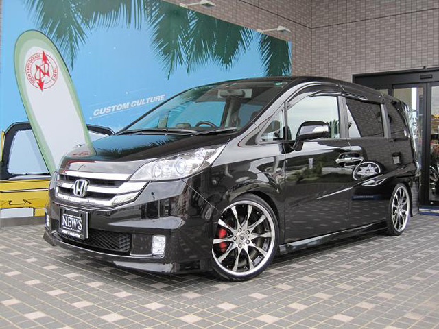 現行ステップワゴンスパーダ出来上がりました!!!!!足下にWORKシュバートSC2 19インチを入れ、RS−Rの車高調でバランス良くダウンさせています。ホイールスポークの隙間からチラリと見える部分も手を抜いていません!!!!!ブレーキを赤にペイントしワンポイントにバッチリです(^−^)ライト類もHID6000Kへ変更済みで夜間の視認性も確保しています☆ |