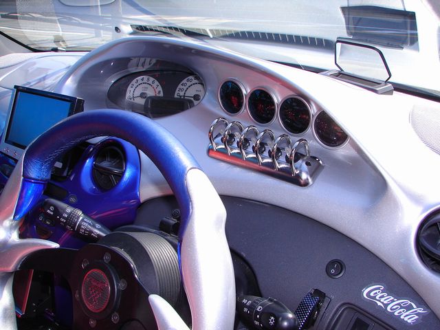 一番のポイントはダッシュボードワンオフ作成。油圧、油温、水温、電圧メーターを埋め込み。メーターフードもファイバーにてワンオフ作成。