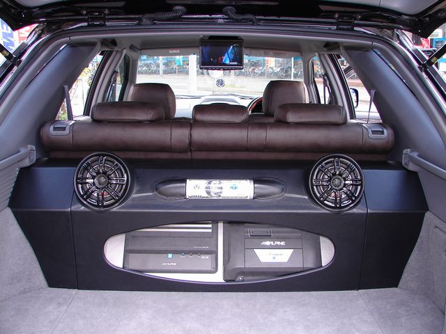 ホテルの高級ソファーにも使われているレザーになんと真ん中にアクセントとしてパイソン柄を入れています、シートの中身も凝っていてウレタンフォームを2センチ増ししているのでフカフカでもあります、モチロンALPINEフルカスタムオーディオなのですが必見は中央のキャパシターにエアブラシで100ドル札を描いていますよ(^^)わかります?? |