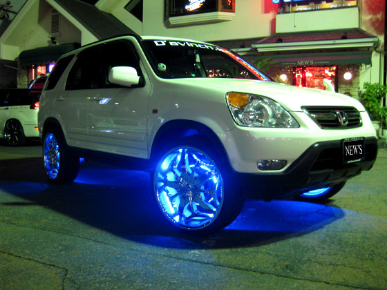 まずは目に飛び込んでくるホイール!!!!!22インチ入れちゃいました(*^^)vダヴィンチ ラグノ 22インチ装着です☆そして、ホイールの奥に潜むブルーのLEDが何ともいえませんねぇ〜(^−^)ヘッドライトとフォグにはHID6000Kを投入しております(^−^)夜間の視認性もバッチリです!!!!!