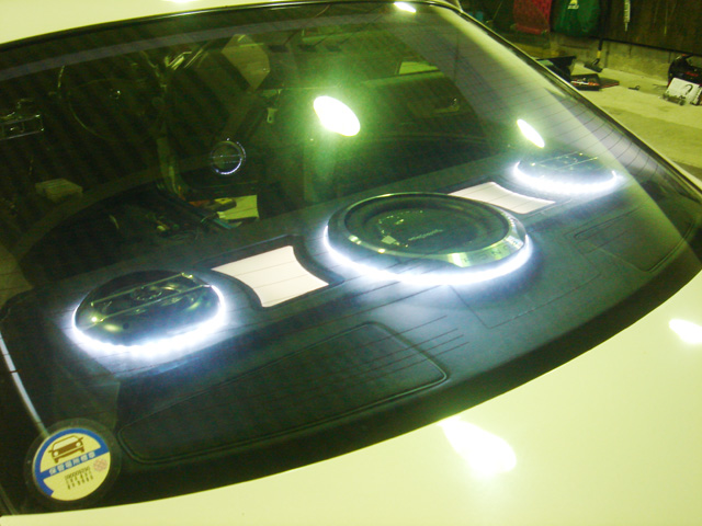 内装を一気に仕上げて頂きましたM氏!!オーディソンBit Oneやロックフォードのアンプ・スピーカーを使ったオーディオシステムで良い感じの音に仕上がってます♪もちろん見た目もこだわってドアやリアトレーにアクリル&LEDもインストール!!モニターと光で夜は目立ちたい放題ですねっ☆