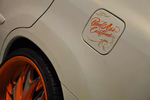 インパクト大なホイールはドルチェ DC20の24インチっっ!!しかも、、、おしゃれに片側2本だけホイールペイントを施して、左右の雰囲気が全然違う。。。ヘッドライトもCCFLリング付のWプロジェクターに変更して、ミラーウインカーも投入!!決め手は給油口のピンストライプ。v(^^)USの雰囲気を感じさせる一台に仕上がりましたね!!