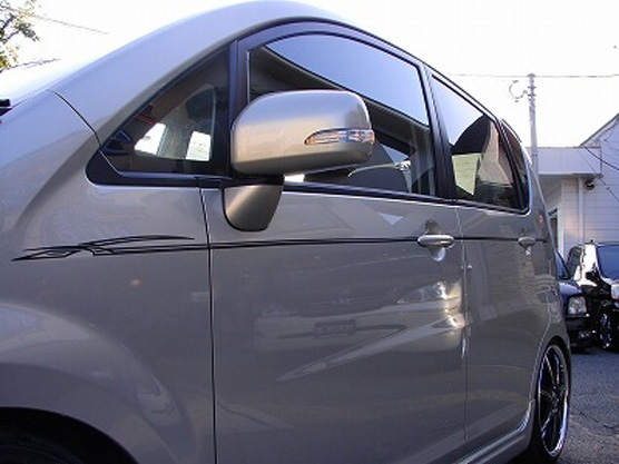 男前な一台が出来上がりました☆17インチのクラブリネアL612にBOLDのアブソリュートDSで超低空仕様!!乗り心地も兼ね備えたセッティング。v(^^)vエアロもモードパルファム ファントム雅夢を巻いてお洒落な男前号が完成しました!!そこにオーナー様こだわりのヘッドライト加工でレンズインナーブラスト加工とプロジェクター&LEDリングで他のMOVEを圧倒する目力をGETしました☆
