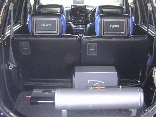 黒×青をバランスよく取り込んで張替えをしています。オーディオも音質にこだわっています。今回はオルタネーターもハイパワーに交換してより電気の供給を安定させて無理なく車両を動かせるようにバージョンアップさせました!