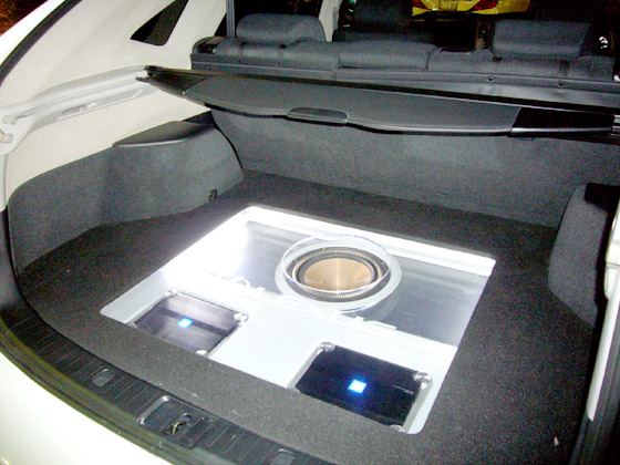 オーディオはデッキ・スピーカー・アンプなどフルALPINE仕様! でプロセッサーも付いててトランクにはアンプとウーファーをワンオフインストール! そしてライトアップでオシャレに演出してます☆ でも普段はフタをして荷物も載せてお買い物にもバッチリ対応の使い勝手とカスタムのナイスコラボですね♪