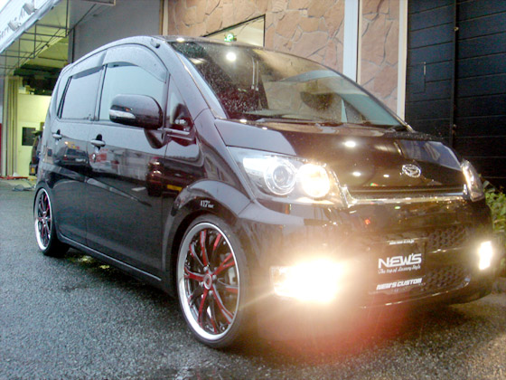 大人気のL175ムーブをまたまたカスタムしちゃいました♪WORKシュヴァートSC4の特注オーダー品でレッド/ブラックカットクリア仕様です(^^)車高調もまたまた人気のRSR Black-iを使ってフルダウン!!今度はアイラインの追加とメッキピラーを装着します☆パワーアップしてまた更新しますね!