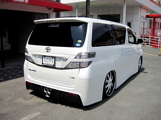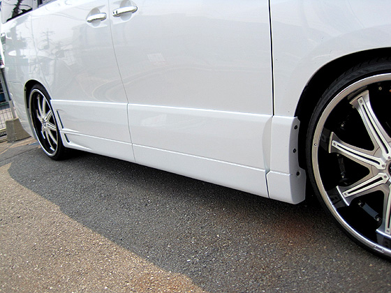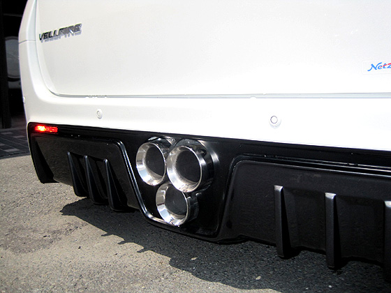 まず目を引くのは大胆に加工されているリアバンパーですね!レクサスLF-Aをモチーフにした3本出しマフラー。うるさいんじゃ無いの??ご安心ください!車内からリモコン操作できる音量調整弁がついてますので、イベントから通勤までマルチに対応しています。前後バンパーはブラスティージュエルで6連HIDフォグランプで仕上げています。サイドは当社製品の「ニューズ」です!!ダクト付きなのでこのお車にはぴったりですね☆足元はクリムソンの22インチ&BOLDのエアサスです!べたべたにもなりますよー(^^)/ |