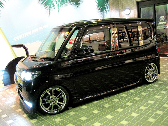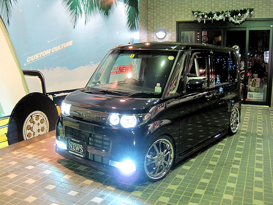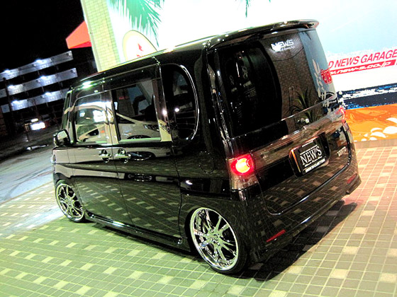 このお車・・・キュートな女性オーナー様です!!びっくりするのはまずこの低さ。。。17インチ最新作のヴィエナ メリージア☆第一号装着車!!足回りはBOLD DS車高調+L-LINEアクスルキット。。。オーナー様のこだわりにて装着。レンズ類は薄くスモーク加工を施して、黒ボディーにいっそうまとまり感のでる仕上がりにっ!ヘッドライトはCCFLリングをWで装着してフルHID化。テーマは『男っぽく☆』って・・・かわいく言われてもぉ〜。。。この車高にスタッフ全員ためらいました。(汗) |