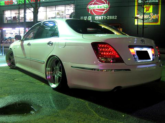 九州では、まだ装着率の低い、レオンハルト ラーゼン ブラッシュドディスクにノーマルスーパーフランジリムをチョイス!しかもリヤには、10.5Jを入れちゃいました(^−^)足回りには、ボルドワールドアブソリュートDSでバッチリ低車高で固めています☆ライト類もHIDへ変更し、リヤも寒冷地仕様で決まっています!
