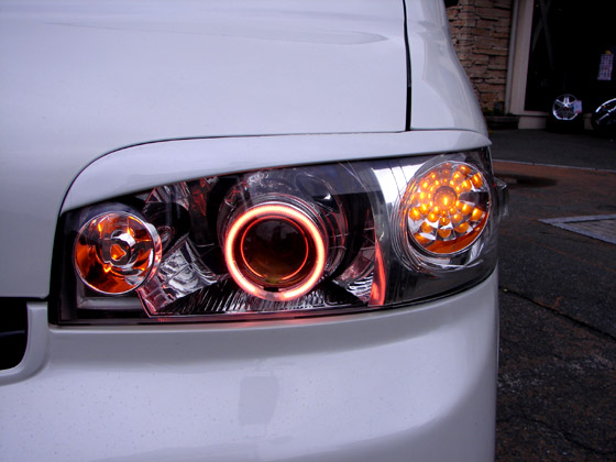 一番に目に飛び込んでくるフロントフェイス!モードパルファムのエアロをフルキットで装着しヘッドライト加工でプロジェクターにREDのイカリングで引き締めています!!!!!塗り分けもあえて半ツヤブラックをチョイスしこだわりを出しています!BKホイールとの相性が抜群の1台です(*^^)v