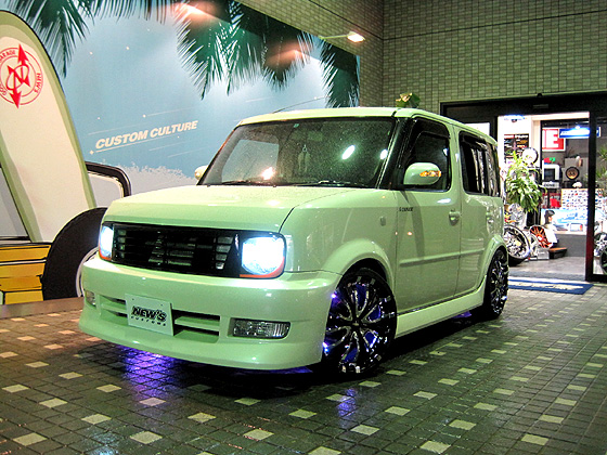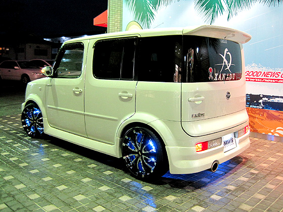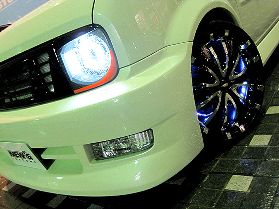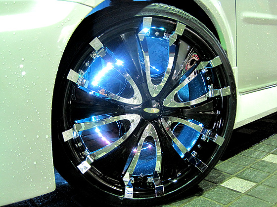 今回、ホイールを交換!!センターキャップがなんとも激しいホイール!しかも、ホイール内にはマルチカラーのLEDを装着!!ナイトドライブの鬼です!!