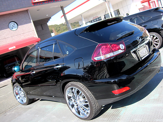 ブラックのボディーにLEXANIダガーの22インチ&タナベのダウンサスをチョイス!!シンプル仕様でキマッテますね☆今回はHIDバルブを装着させていただきました!今後はライト辺りもカスタムしていきたいですね(^^)