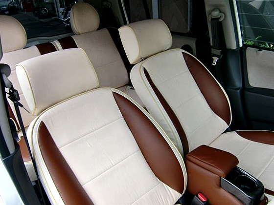 以前シートカバーは装着されていましたが、今回シート張替えを決行っ!!色使いと生地にこだわって後は・・・お任せぇ〜〜〜〜(汗。。。)カッコかわいく仕上がったかな!? |