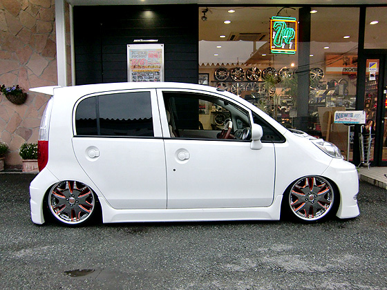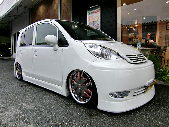 まず、目を引くのはクイーンズのエアロ!!Kカーとは思えない威圧感!!そこに180マジェスタ用のナンバー枠を加工取り付け。リアFOG・バックランプ共にLEDを埋め込んで純正にはない明るさと質感をGET!LEDテールランプとのバランスもばっちりですね☆フロントはヘッドライトにF50シーマのバルカンを埋め込んでCCFLリングをウインカー部分と合わせてWでインストールしています。姫(女性)が乗っているとは思えないエクステリアに仕上がっています。v(^^)v 今回は、ホイールと足回りの変更です!!以前も17インチを装着されていましたが今回、リアアクスルをご購入と同時にホイールをクラブリネア L566(オリジナルペイント)の17インチをご購入されました☆よりいっそう高級感が増しましたね!!! |