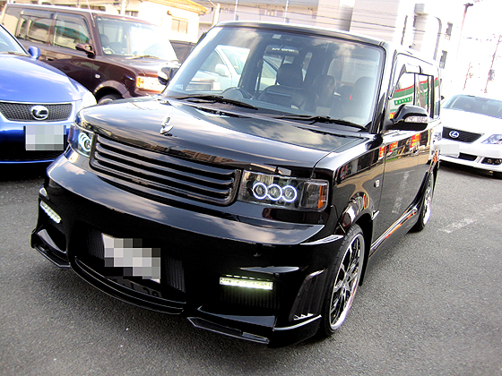 人気のbB!! 以前はファブレスフルエアロでVIP的でしたが! 今回そのファブレスエアロをベースにバンパー加工&デイライトやダクトも投入して今風なスパルタンテイストに仕上がりました!!! 足元にはWORKのシュバートでサイズはベストバランスの18インチ!! 足回りはACCのエアサスで見せるも走るもバッチリです!!!!3連プロジェクターとイカリングも素敵でしょ(^^♪ |