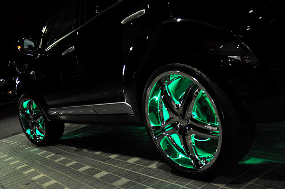 カスタムベースとしてはまだまだ希少な三菱アウトランダー・・・今回外装をフルで手を加えちゃいました(^^)ドルチェの22インチの装着と同時にグリーンのLEDで足元をライトアップ☆ナイトシーン目立ちまくりですね(^^)/他にもヘッドライト加工やウインカーミラー、リアLEDマーカーなどなど小物もタップリ手を加え格別な仕上がりです♪ |