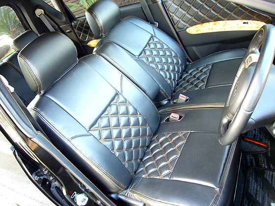 中もグレイスのシートカバー同様にドアや天井をダイヤキルト柄の張替え! パネルは雰囲気漂うイーグラによるウッドパネル!! と高級感溢れる超オシャレな仕上がり!! とても軽の内装とは思えません☆ |