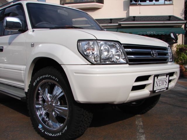 4WD的なアイテムを排除し(元々フロントにパイプが付いていた)腰下をボディ同色にまとめ20インチのクロームホイルとホワイトレターのタイヤでシンプルにまとめてみました(^^)珍しいアイテムとしてはイカリングつきクリスタルヘッドライトですね、次回はリフトUPなんていかがでしょうか(^0^)/ |