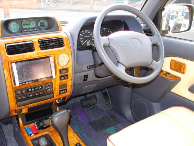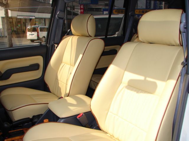 元々プラドはグレーでさっぱりとしていて個性が無いので、オーナーさんが一番力を入れたのはインテリアです、各部を明るい色でイージーグラフィックしてベージュ革でシート&ドアを張り替えました、これで長く乗れそうですね(^^)次回はステアリング加工と、マフラーをやっちゃいましょう!! |