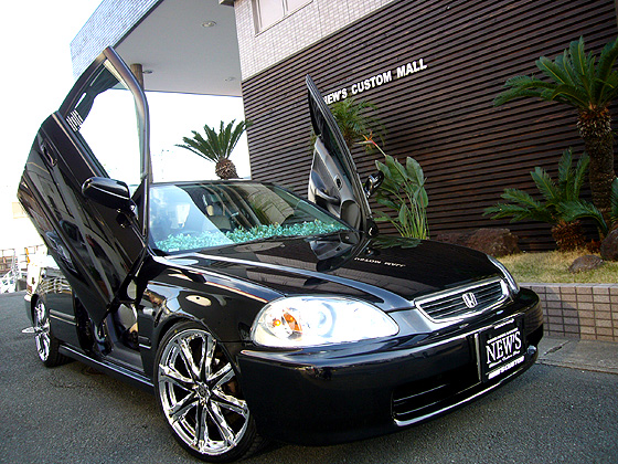 1番の見せ所はなんといってもこのガルウイング!!!!! さらにドアを開けるとブルーのLEDで夜のインパクトもバッチリ!! 足元にはジュリア 24 ネージュを履いて走行中も視線を浴びること間違いなし!!!