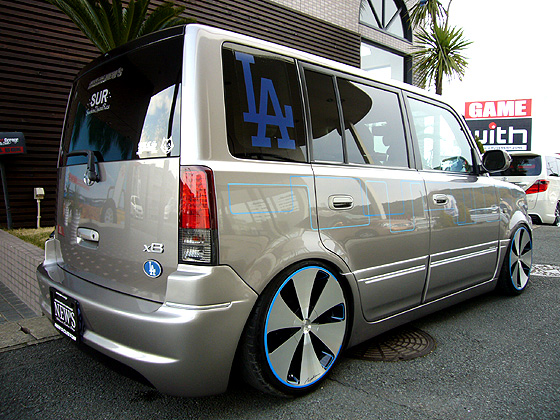 いい〜感じの低車高ですね☆なんてったってBOLDのエアサス入ってますから!! ホイールは18インチのツェンレインをリムにブルーのラインをアクセントに! エアロはDAD。ライトにはイカリング! LEDテール! をフォグやミラーウインカーまでスモーク加工!! とシンプルにまとめた1台です☆