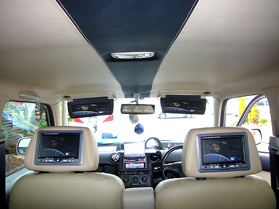 ベージュをベースにシートカバーに天井、ピラーなども張替え!! 天井にはワンポイントでブラックレザーがあしらわれてます!! 外装と同じく室内もシンプルにまとまってキレイですね☆