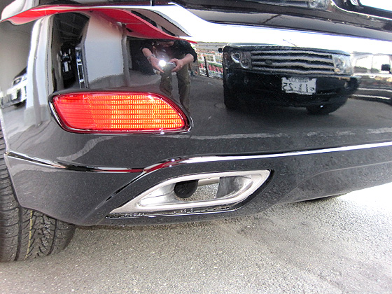 今回外装をフルでカスタムしちゃいました(^^)/足元には大人気・マーテルの22インチを装着!!エアロはNEW'Sオリジナルのエアロをフロント・サイドに、リアはエルフォード製マフラーインバンパーを装着しました。前後のバンパーの相性もバッチリでしたね☆ディフューザーが良い感じです♪