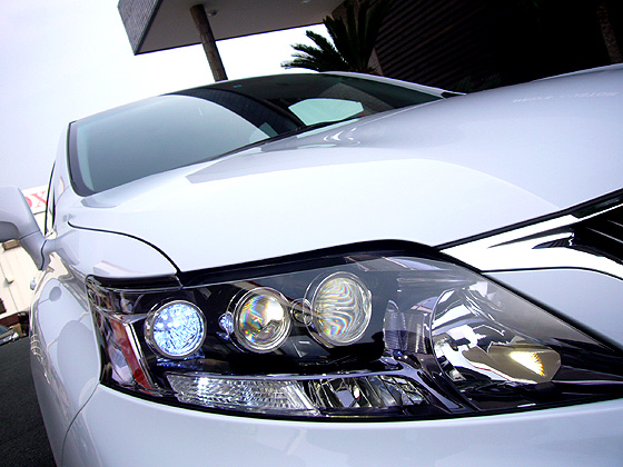 今回は、足元に超最高な!FORGIATOのVizzo! 24インチを入れちゃいました!!(><) その奥に・・・ROTORAの6ポットブレーキキット!!! まさに最強最高です! ヘッドライトのLEDプロジェクターライト横、ウインカーをスモールの時に白で光らせて! 3連プロジェクター風にできちゃうキットを組込んでます!! 夜のアピールもバッチリです!!!!