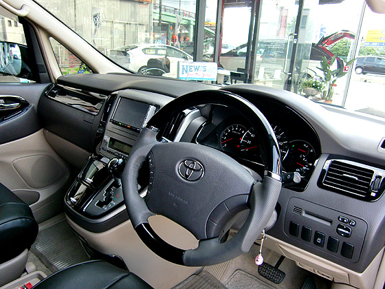 インテリアパネル・ステアリング・シフトノブをピアノブラックで統一!シートカバーもブラックで揃えてカラーも一新されました。高級感が出て良いですね!