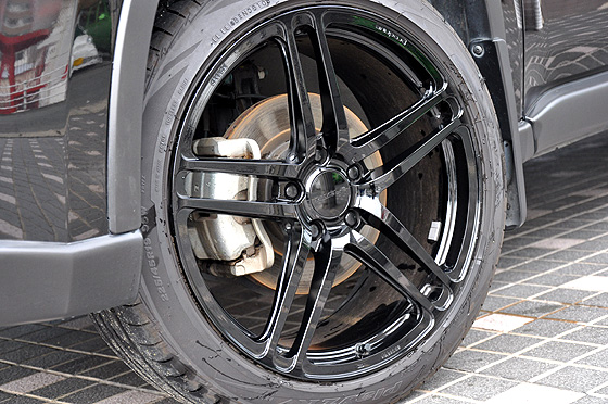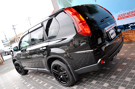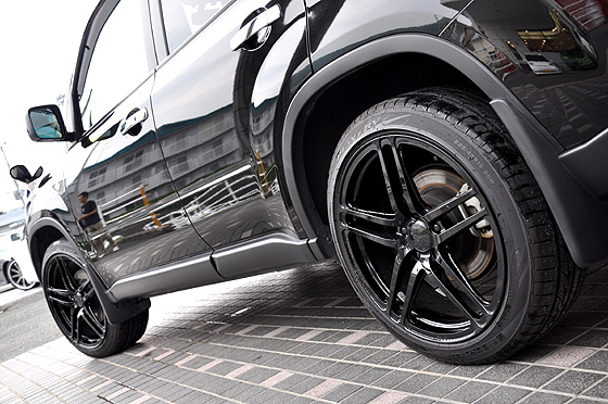 今回ヘッドライト加工を施工しました!CCFLイカリング、プロジェクターを加工装着し目立ち度抜群ですが、さらにヘッドライトインナーをマットBKペイントにてインパクト絶大なフェイスに仕上がりました!足元には、19インチの鍛造ホイールを装着しています。今後は、22インチです(^−^)